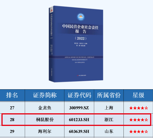ESG指數(shù)領(lǐng)先民營上市公司TOP50榜單,桐昆入選!